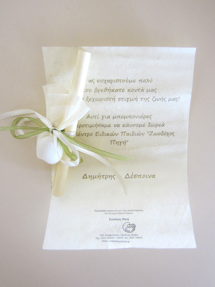 Το εργαστήριο μπομπονιέρας (Γάμου και Βάπτισης) λειτουργεί ως προστατευμένο παραγωγικό εργαστήριο καθ’ όλη τη διάρκεια του έτους. Αναλαμβάνει παραγγελίες σε μπομπονιέρες, ανταποκρινόμενο στις απαιτήσεις του πελάτη και της αγοράς γενικότερα.